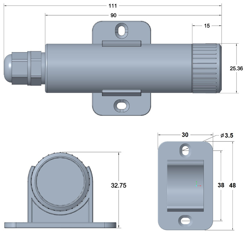 外形尺寸 | 傳感器本體:111*25.5mm (長(zhǎng)度*直徑) |